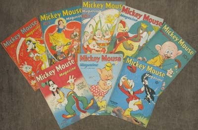 Two-thirds of the years issues featur-ing the most recognizable figures to spring from the imagination of Walt Disney. Each thirty-six page publica-tion is solid and complete, with no sig-nificant tearing or staining. Quite impressive. Cover stars include Snow White, Goofy, Donald Duck and more.