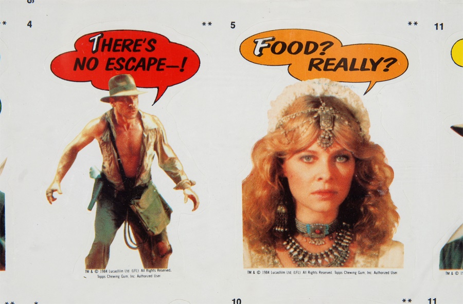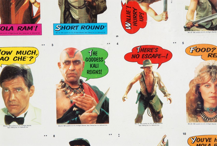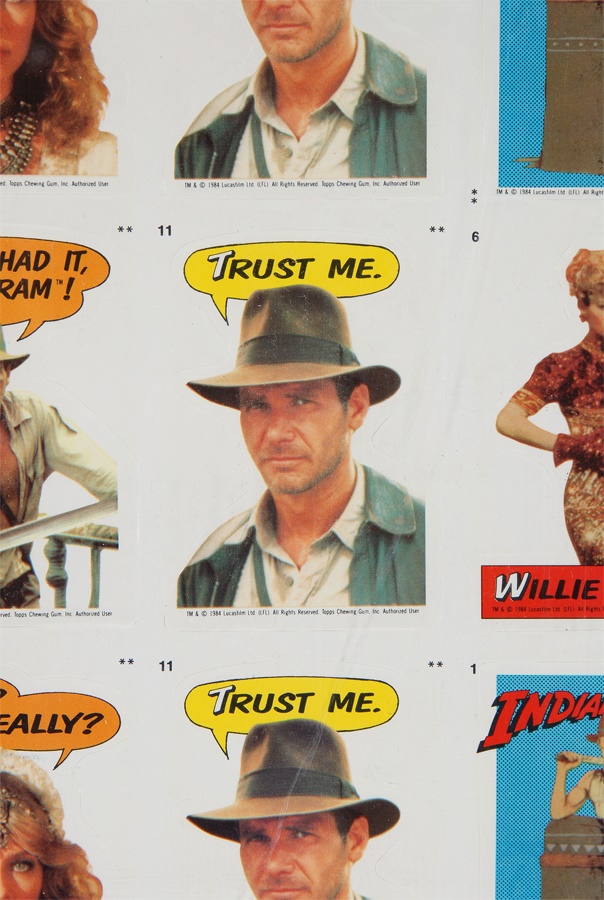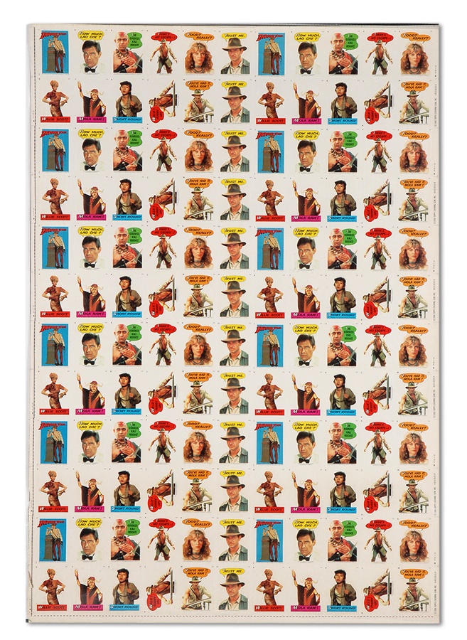 Inspired by the summer 1984 sequel to "Raiders of the Lost Ark," these are the original uncut sheets of Topps' mostly comic-style stickers featuring Indy, Short Round and all those bad guys. 25 sheets, 132 stickers on each, backed with puzzle cards. Most stickers are near perfect, some tattered edges.