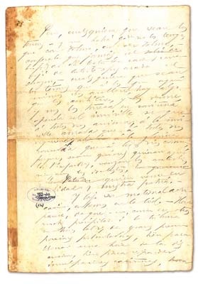 The George Washington of Cuba hand-wrote this important document. Entitled "The Country " (La Patria), he talks of "my true feeling" about Cuba. Passion and patriotism ring clear as he speaks of Cuba as a maternal, mother figure. He drives to be free of Spain and attacks them because "they have twisted my ideas." Wanting "victory" (Revolution), he ends with "In reality, who triumphs at the end is the country." The 12.5x8.5" page is hand-written on both sides and unsigned. Overall VG, the ink is bright, dark and clear, just some soiling to the paper and hori-zontal fold in center. Marti is strongly revered by both Marxist and anti-Marxist Cubans to this day. He is Cuba's most respected historical figure and the father of the revolution against Spain. This is one of only two Marti documents we have ever seen sold.