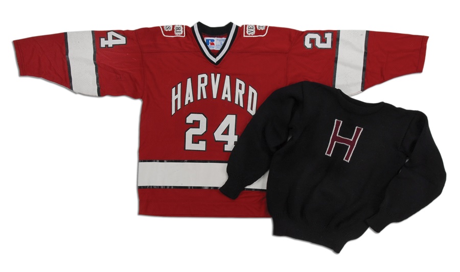 Lot # 735: Circa 1986 Allen Bourbeau Harvard University Game Worn Jersey and Sweater