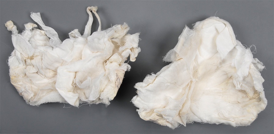 Before Mike Tyson put on the gloves used to demolish Larry Holmes in their championship fight in 1988, Tyson's trainer wrapped his hands for the event. Offered here are the actual hand wraps used by Mike Tyson in his fight with Larry Holmes. Perfectly intact and include the commission inspector's markings. Comes with a letter of authenticity from Tyson's early professional assistant manager Steve Lott.