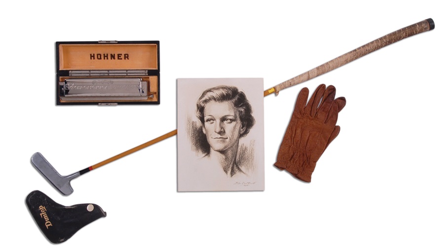 Long before women were as widely accepted as athletes as they are today, Babe Didrikson Zaharias blazed a trail that transcended gender. She was named AP's Female Athlete of the Year five times due to her prowess in golf, basketball and track, and ESPN named her the 10th Greatest North American Athlete of the Century. This collection includes a Hohner Harmonica, Golf Glove, Babe inscribed Spalding & Bros. putter (with wood handle), and photo of a pencil sketch. The golf items and harmonica show use and are in Excellent condition, comes with letter of provenance.