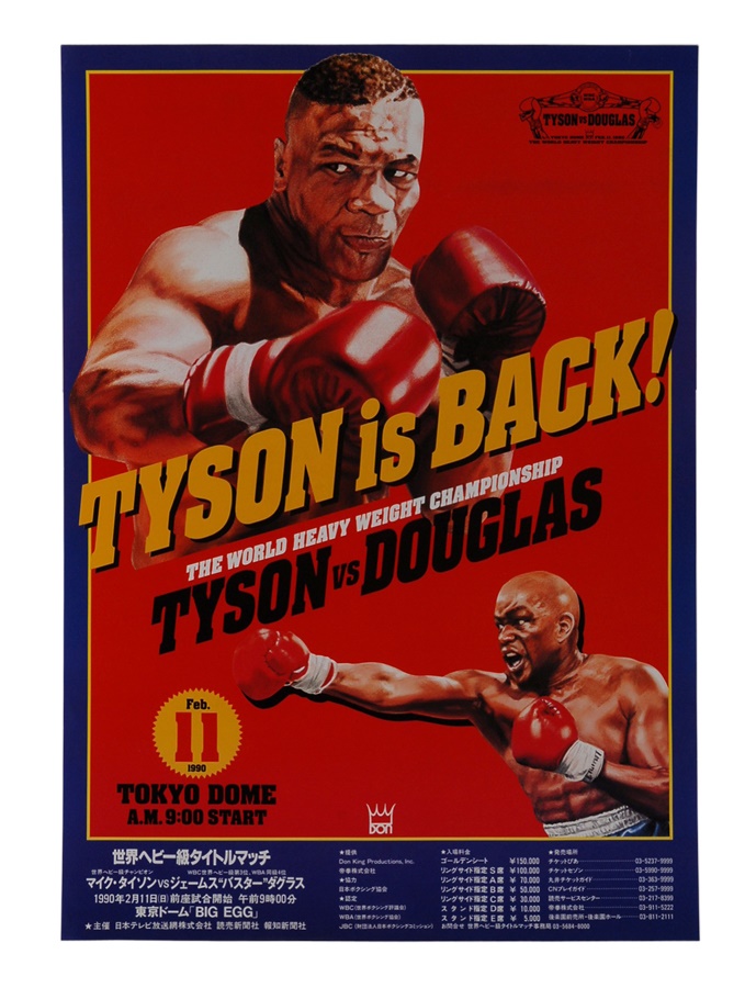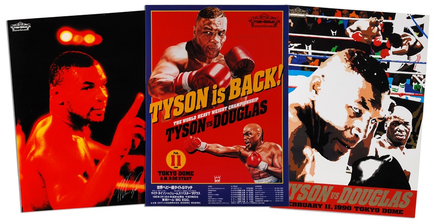 This is a group of three original, on-site posters for the Mike Tyson-James "Buster" Douglas heavyweight championship fight on February 11, 1990 in Tokyo. Douglas upset an out-of-shape Mike Tyson to win the title. All three scarce posters are paper and 20.5"x28.5." Bold color and graphics, and all in EX condition or better.