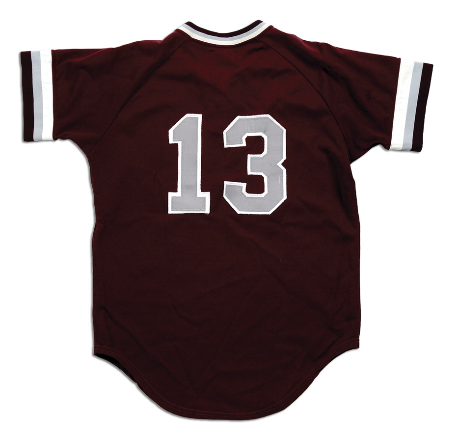 Four years before his major league debut, Derek Jeter donned this amateur jersey for a summer league team in his hometown of Kalamazoo, Michigan. Though not to be confused with his high school ballclub which had the similar nickname of Maroon Giants, this maroon top with elastic collar has "Maroons" and "13" stitched on the front, as well as "13" on the back. There is some slight wear and inside collar tagging that reads "Red Fox Athletic Wear Size L." Jeter played for this team all four of his high school years, including his senior summer during which he was drafted by the Yankees. A letter of provenance is included from the consignor, who held onto the item after Jeter decided not to purchase it at the end of the season.