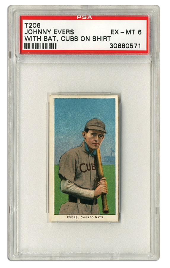 Lot # 202: Johnny Evers With Bat, Cubs On Shirt (PSA EX-MT 6)