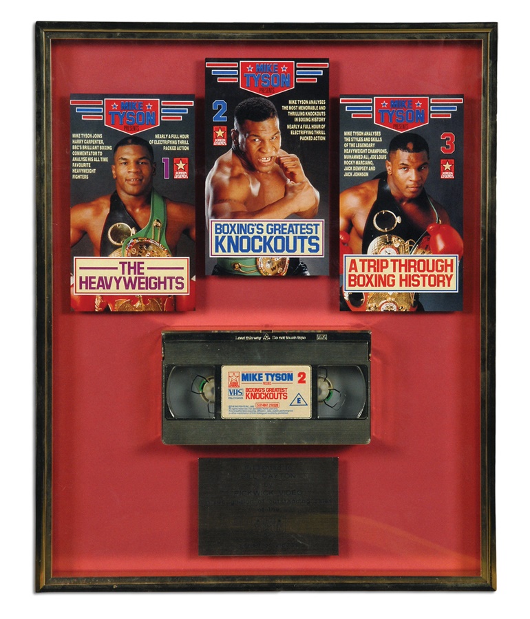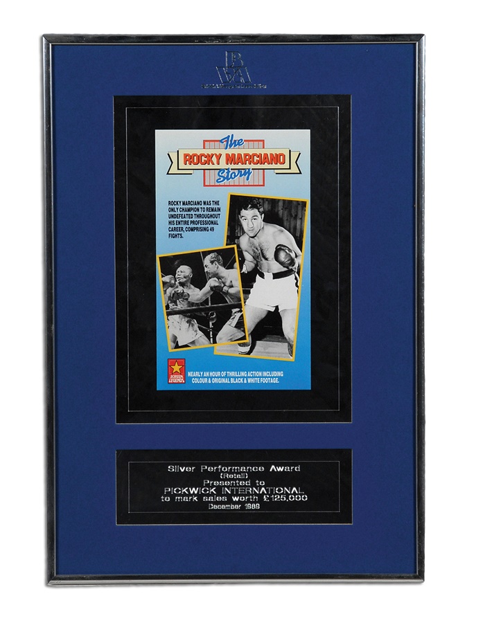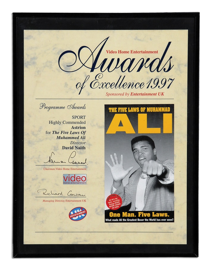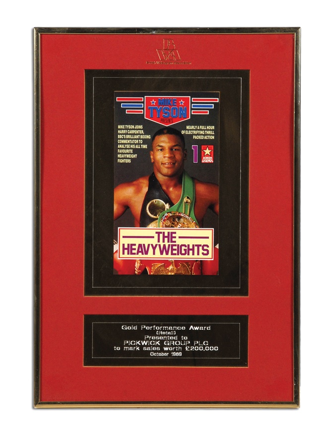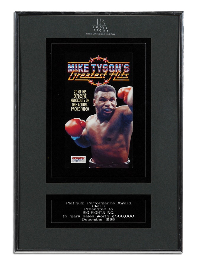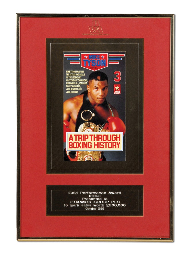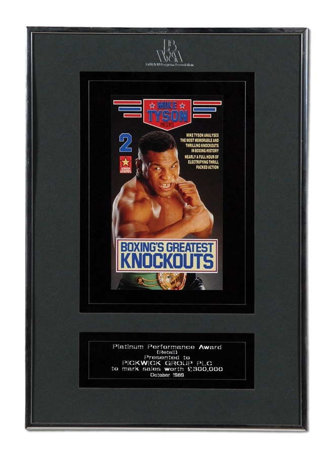 This is a group of nine film awards given to the group which at one time led the career of Mike Tyson. Awards were given for sale and film excellence to Bill Cayton, his company Big Fights, Inc and the Pickwick Group (who did work for Big Fights). Cayton was one of the great managers in boxing, a film collector and historian and a Hall Of Famer himself. The awards are for five Tyson features, one Ali feature and one Marciano feature. All framed to 11x16." EX or better condition.