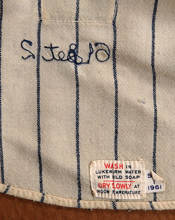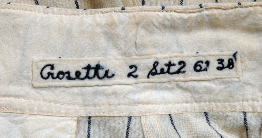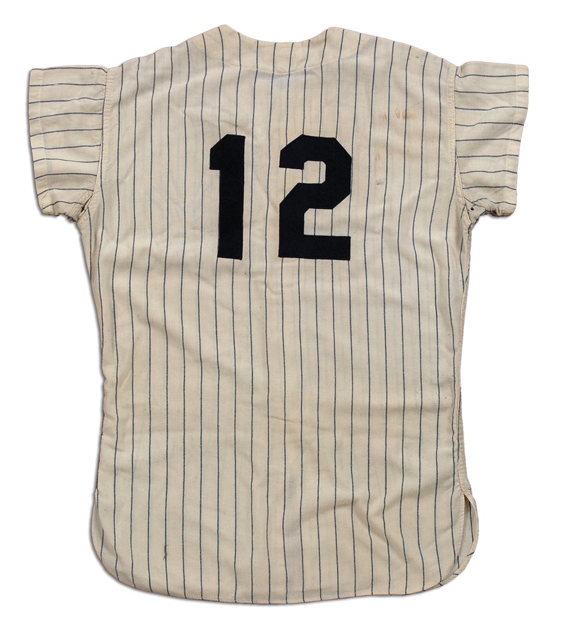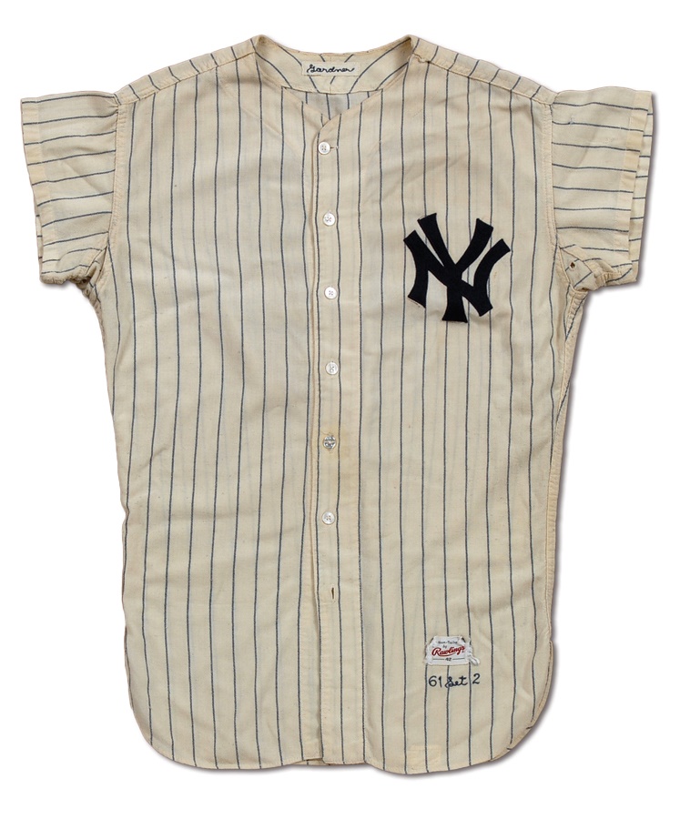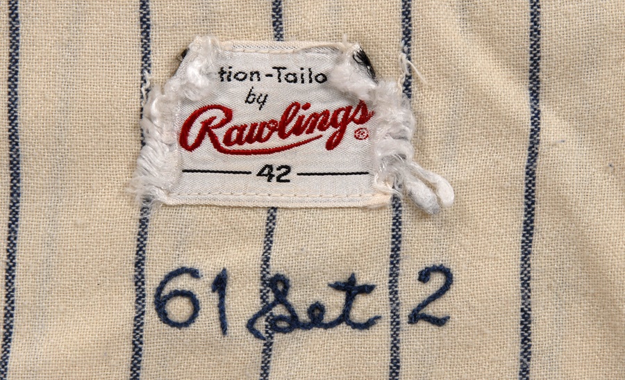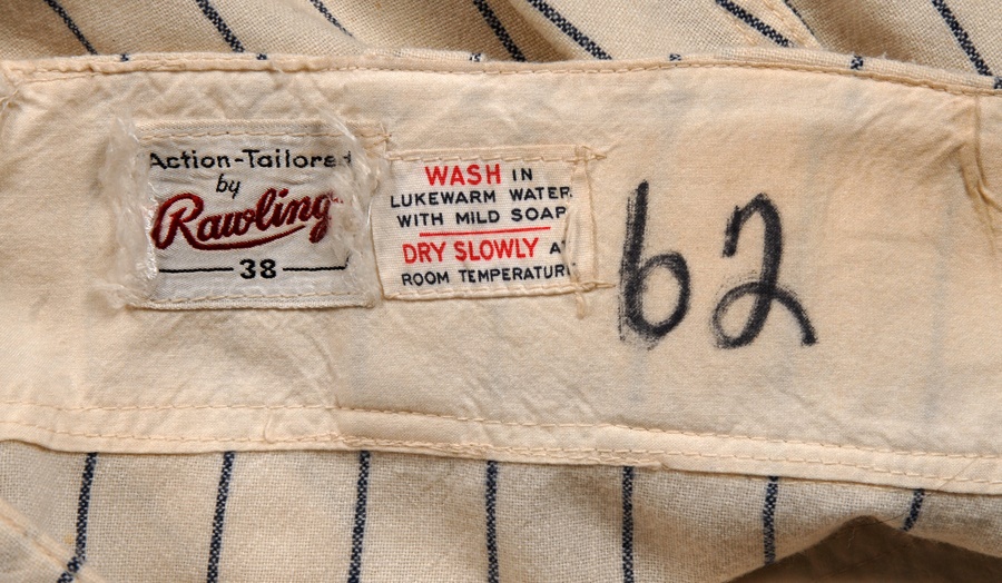 Scrappy second baseman Billy Gardner played a decade in the majors before becoming a big league manager. This game-worn jersey from his short time with the Yankees in the early '60s features a restored NY emblem on the front of the jersey, which includes Gardner's name sewn into the collar and Rawlings label and "61 SET 2" on the inner tail. There also appears to have been a number change (12). The pants are from Frank Crosetti and includes a Rawlings waist label, Crosetti's name, year and size sewn in, as well as the year "62" written in magic marker. The entire uniform shows good use