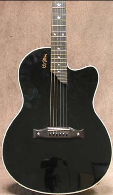 An original Gibson Chet Atkins hollow body acoustic/electric guitar played by Stanley and Bruce Kulick onstage and in the studio finished in black with white cream binding and pearl star inlays on fret board and headstock. Serial number 91473381. Comes with original brown hardshell case with KISS inventory barcode. Estimate $4,000-$6,000.