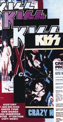 An original billboard in three panels featuring KISS Polygram home videos and CD's that appeared on the side of Tower Records in Hollywood. Estimate 600+.