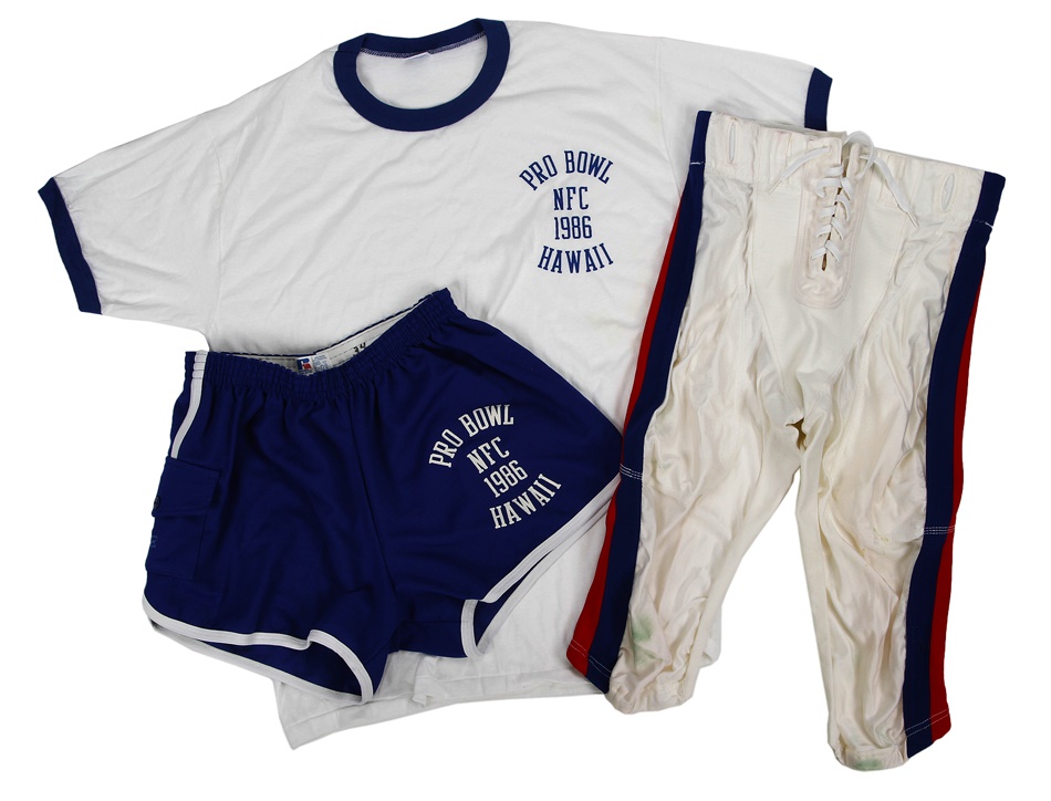 Lot # 432: 1986 Walter Payton Pro Bowl Shirt, Shorts and Game-Worn Pants