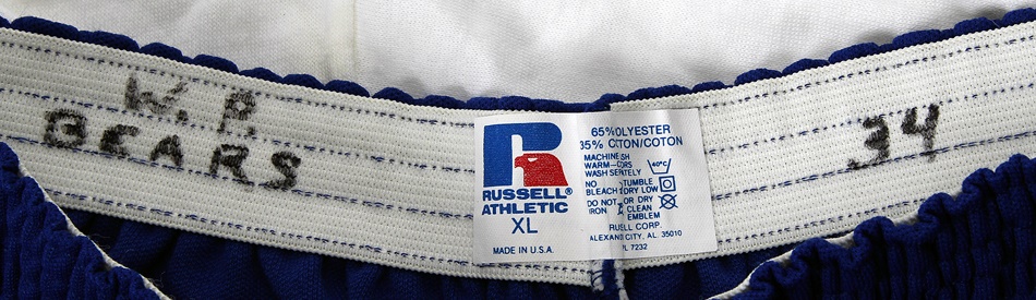Hall of Famer Walter Payton is number two on the NFL's all-time rushing list with 16,726 yards. History will remember "Sweetness" as one of the most dynamic players ever to step foot on the gridiron. Here we have items from his ninth and final Hawaii appearance. The shirt and shorts were from a Pro Bowl practice. The shirt is a Russell size XL and the shorts have same tagging with "W.P. Bears" and "34" written in waistband. Pants were worn in the game, have Medalist Sand-Knit size 26 tag and "W.P. Bears" and "34" written in the waistband with marker. Pants show use. All items came from former NFL equipment man, Don Hewitt.