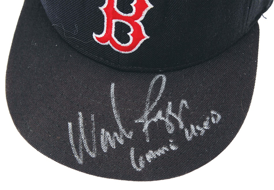 Hall of Fame third baseman Wade Boggs donned this New Era size 7.25 hat and it shows nice use. It was used towards the end of Boggs' tenure with the Red Sox, which lasted from 1982-92. The number "26" is written under the brim in marker, and it is signed on top of the bill: "Wade Boggs, Game Used." Boggs snagged five American League batting titles with Boston and ended his stellar career with 3,010 hits and a .328 lifetime batting average.