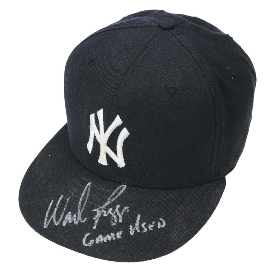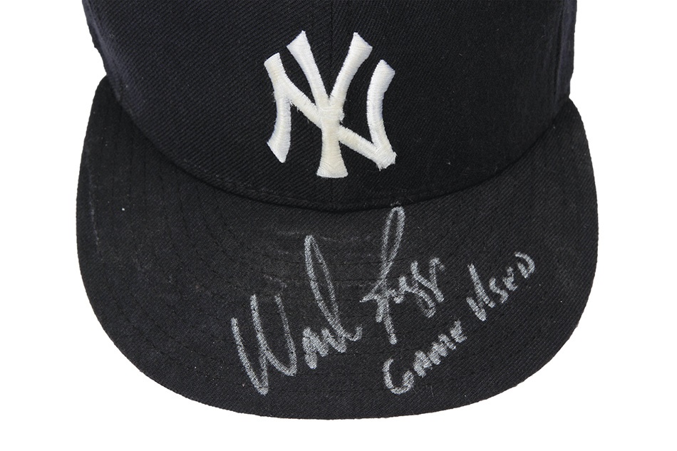 Though most of his individual feats came while wearing a Red Sox uniform, Wade Boggs achieved his ultimate goal in 1996 with the archrival New York Yankees, winning the World Series and further aggravating Red Sox Nation. Sometime during his five years in the Bronx, Boggs wore this New Era size 7.25 cap with Number "12" written under the brim in black marker. It is signed on top of the brim: "Wade Boggs, Game Used" and shows nice use.