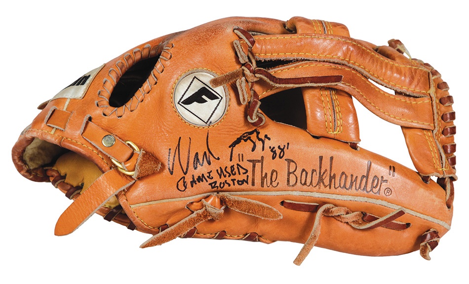 It wasn't until the mid-90s with the New York Yankees that Wade Boggs had perfected his defense and earned consecutive AL Gold Glove awards. Prior to that, the third baseman known more for his hitting prowess used this professional model Franklin glove, which is a W.B.400 with "Pro Tanned Steerhide" stamped on the inside of the pinky. The mitt is well broken-in and shows plenty of use. Signed on the thumb, "Wade Boggs, Game Used '88, Boston." Boggs was a big endorser of Franklin gloves and used them along with the Rawlings brand.