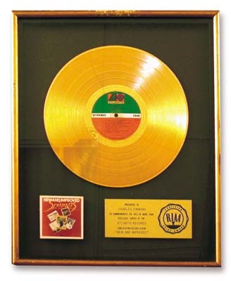 RIAA certified Gold Record Award was presented to Charles Simmons, one of the songwriters on the album. Atlantic Records floater com-memorates sale of more than 500,000 copies. All original and unopened. Certified by the RIAA on 12/18/74 and made in early 1975 which was the start of their floater awards.