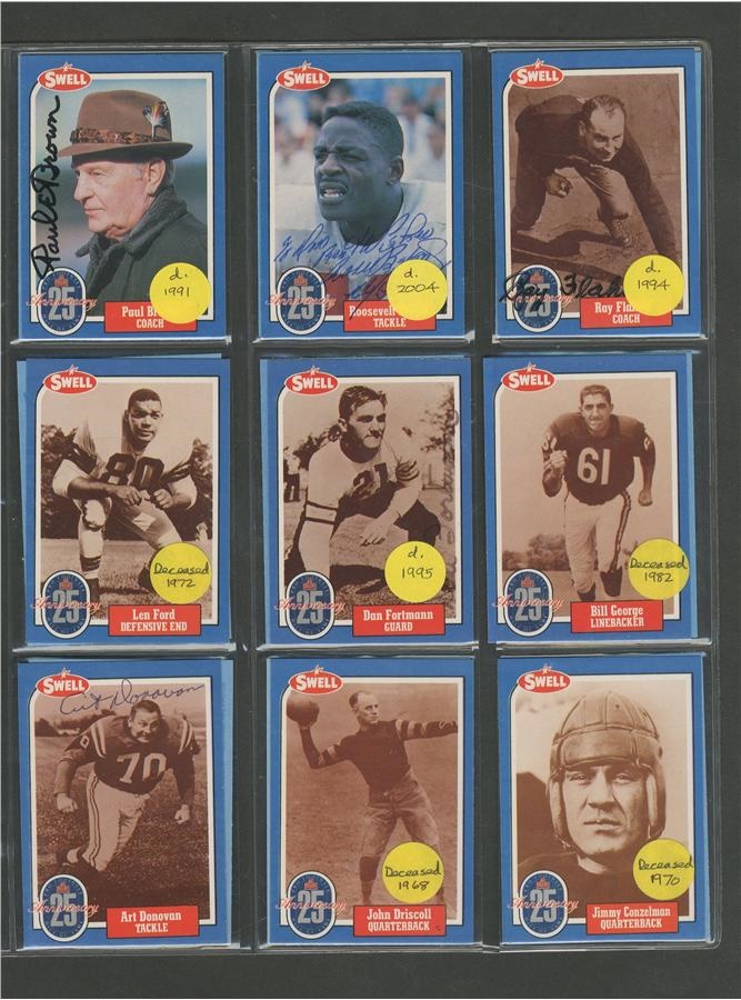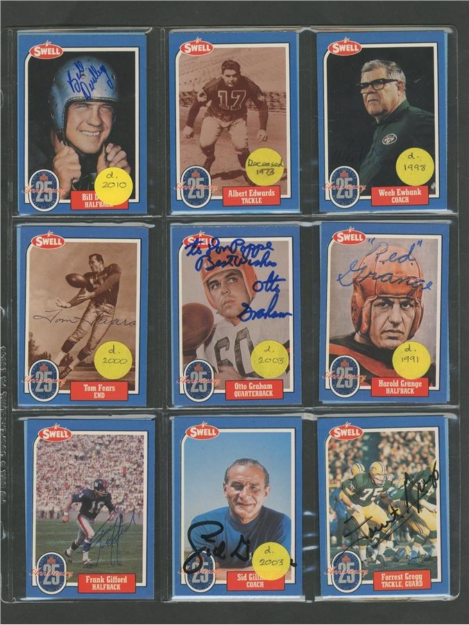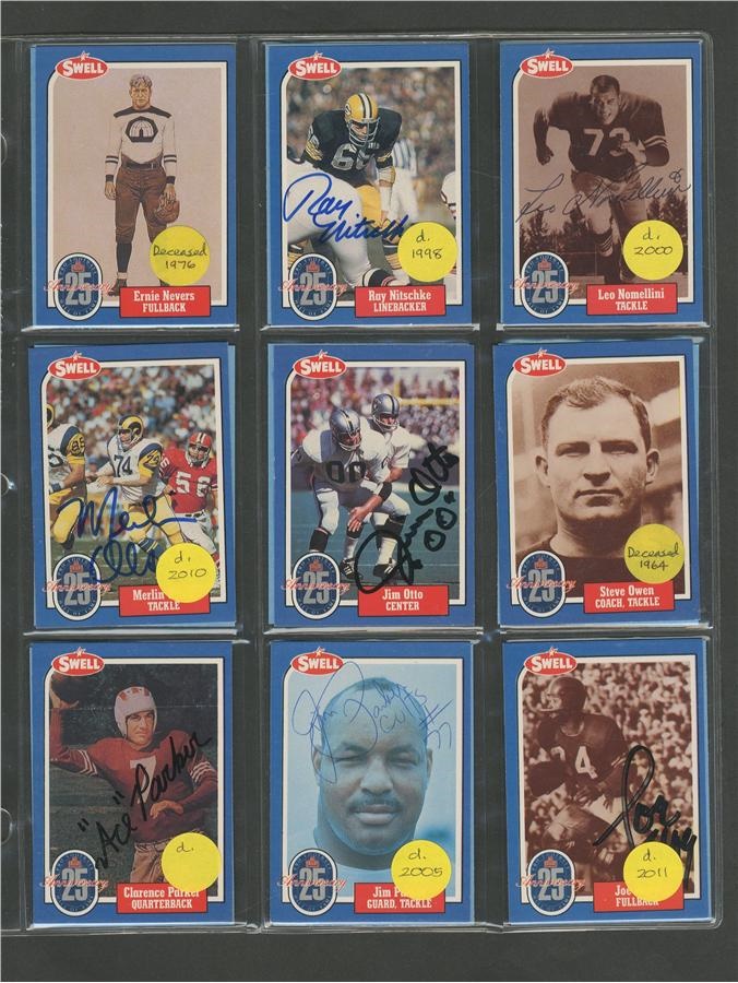 Lot # 289: Professional Football Hall of Fame Immortals Signed Cards (84)