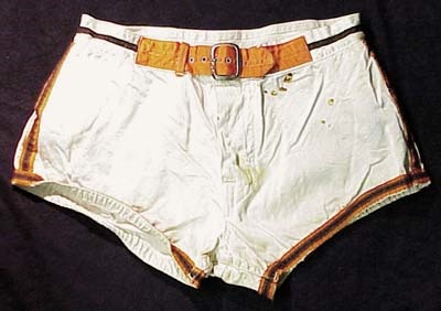 Game worn silken shorts worn by Graham as a member of the Cleveland Browns basketball team. Great Browns colors of orange and brown with merry braided piping. Low and Campbell tagging from these shorts worn in exhibitions. Some rust stains, o/w EX.