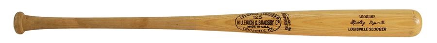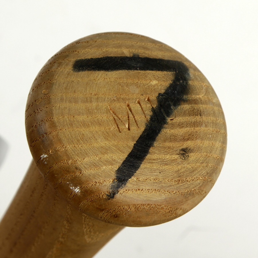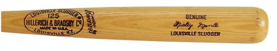 The Mick used this stick during an Old Timers' Game sometime in the 1970s. Acquired from former Yankee bat boy Bill Hongach, this 34.5" Hillerich & Bradsby model weighs just under 32 oz and shows light use. The Hall of Famer's famous #7 is nicely bled on the knob.