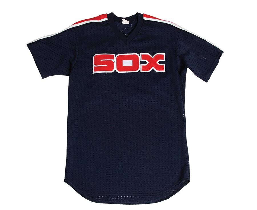 One year before he won his 300th game in a White Sox uniform, Tom Seaver wore this blue mesh shirt with Chicago across the chest and #41 on the reverse. It's all-original with nice wear. Seaver was with the South Siders from 1984 to 1986. The shirt comes with a letter from Chiox announcer Lorn Brown, for whom the jersey was gifted. In a coincidence, both men had come to Chicago after having been let go by the Mets.