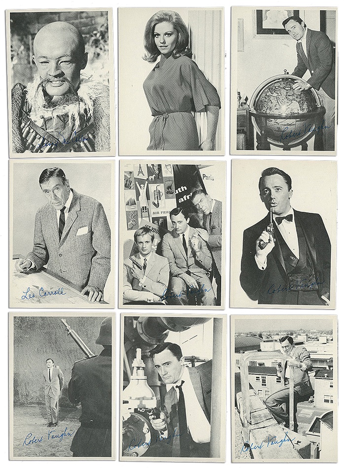 In 1965 Topps based a 55 card set on the TV show "Man from Uncle". Offered is a crisp, untouched set that was originally put away near the time of issue. Cards have sharp corners and are NRMT throughout.