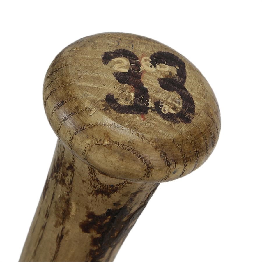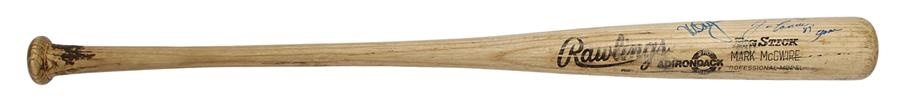 When they both played for the Oakland A's, Mark McGwire and Jose Canseco were known as the "Bash Brothers", helping to lead the A's to the 1989 World Series title. This 34", 32 oz Rawlings Adirondack Model 256B game used bat is signed by both McGwire and Canseco. Shows use with ball and seam marks on the barrel with "33" in marker on the knob. Canseco has added "89 Game" to this "Bash Brothers" bat, meaning it was used during their championship season.
