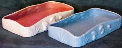 This pair of different colored bowls were made by Vernon Kiln. They were part of the merchandising available for the Disney mega film Fantasia. Each is 12"x7" and one has a small chip.