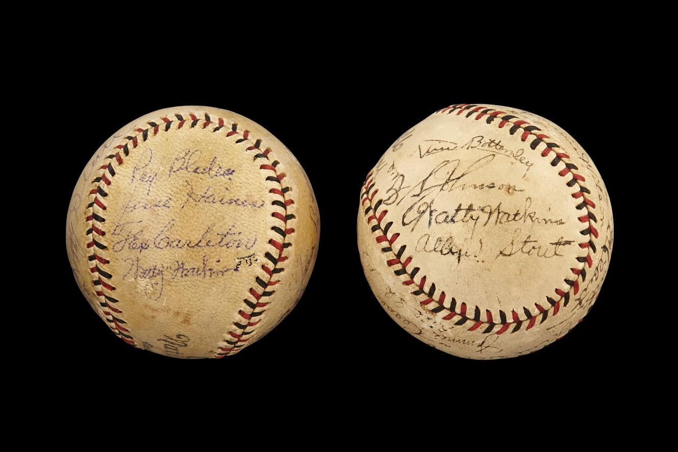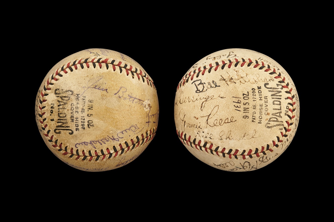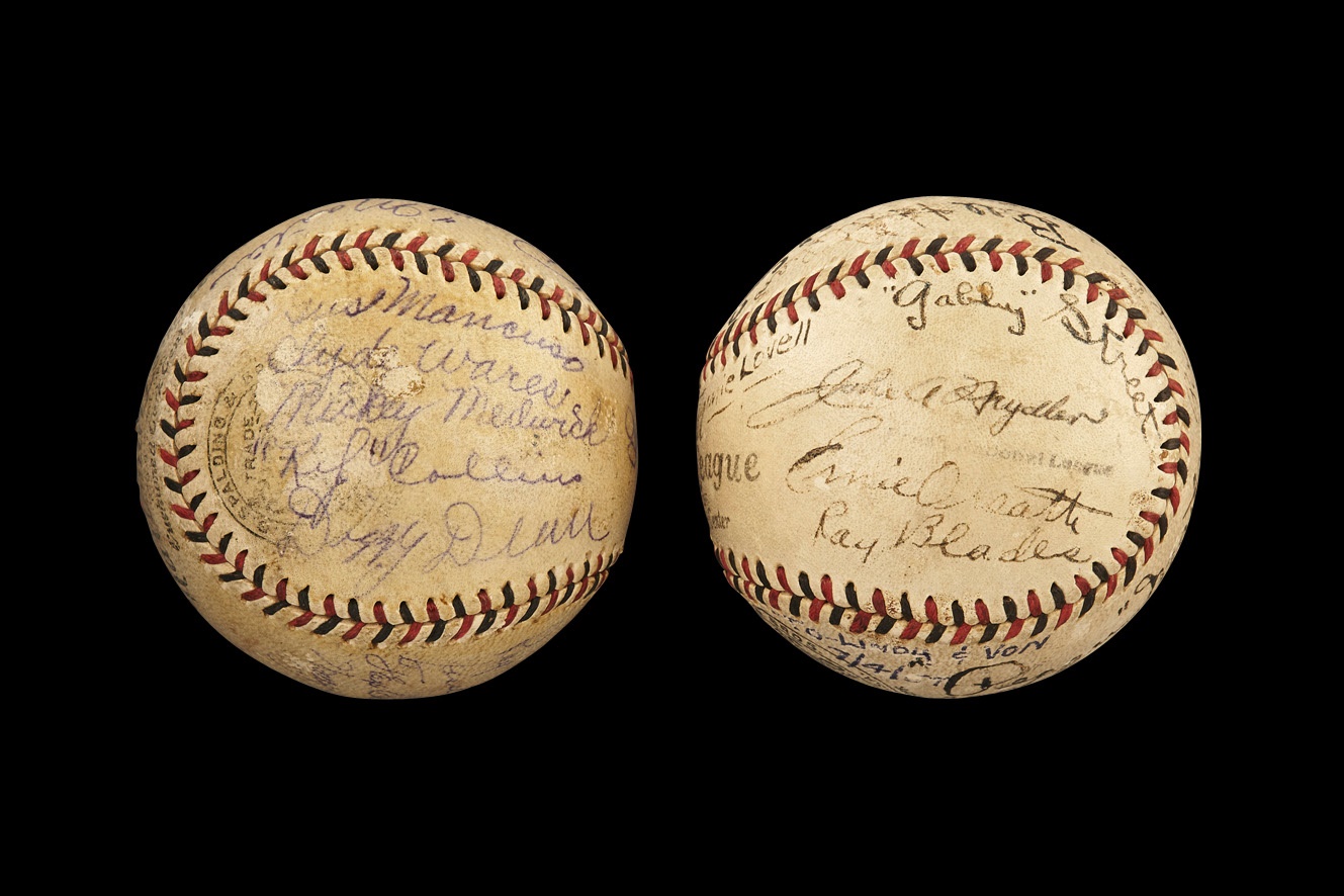 With a stellar, 101-53 record, the 1931 St. Louis Cardinals ran away with the National League pennant by 13 games. Between Chick Hafey and Jim Bottomley's bats, and a deep, dynamic pitching staff, the Cards were able to outlast the Philadelphia A's in a tight, seven-game series to win the Fall Classic, and these two official National League baseballs are terrific artifacts from that season.The 1931 ball is EX and features 16 signatures, some of which have been traced over (Bottomley is a clubhouse version). The 1932 ball is in VG condition and the 16 ink signatures average 5-6/10. Keys are Jesse Haines, Pepper Martin, "Ducky" Medwick, "Dizzy" Dean and Bottomley.