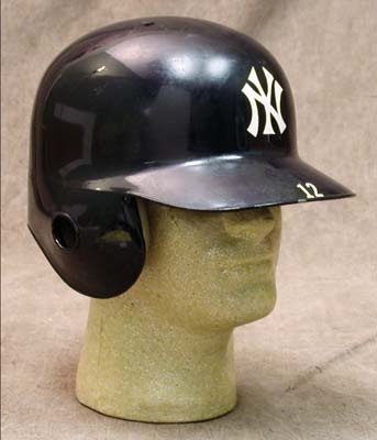 Definitively 1996 helmet that could only have been worn this year. Unusual metallic blue helmet worn only in 1996. Also, has the smaller numbers on the brim and on the back, which is also unique to that year. Size 7 3/8 with his "12" in sil-ver on the inside of the helmet. Best of all are the remnants of tar on the insides from his batting glove (in exactly the right places). Clock on the inside shows it was made in 1991 but used in 1996. The helmet waited five years for a championship but Wade waited a heckuva lot longer.