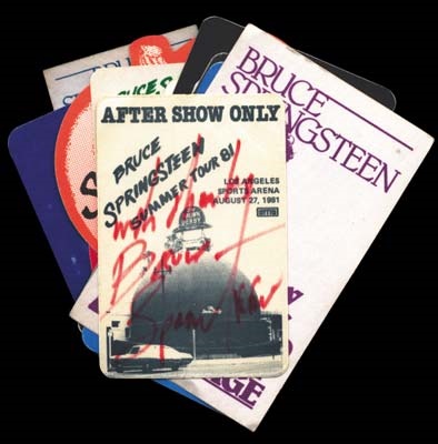 All are unused from the historic Darkness on the Edge of Town and The River Tours. Nice varieties of styles, shapes and sizes. Los Angeles August 27, 1981 pass was signed in person "With Thanks Bruce Springsteen" in red sharpie. NRMT.