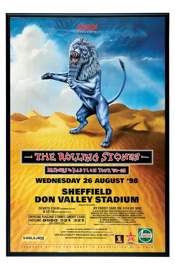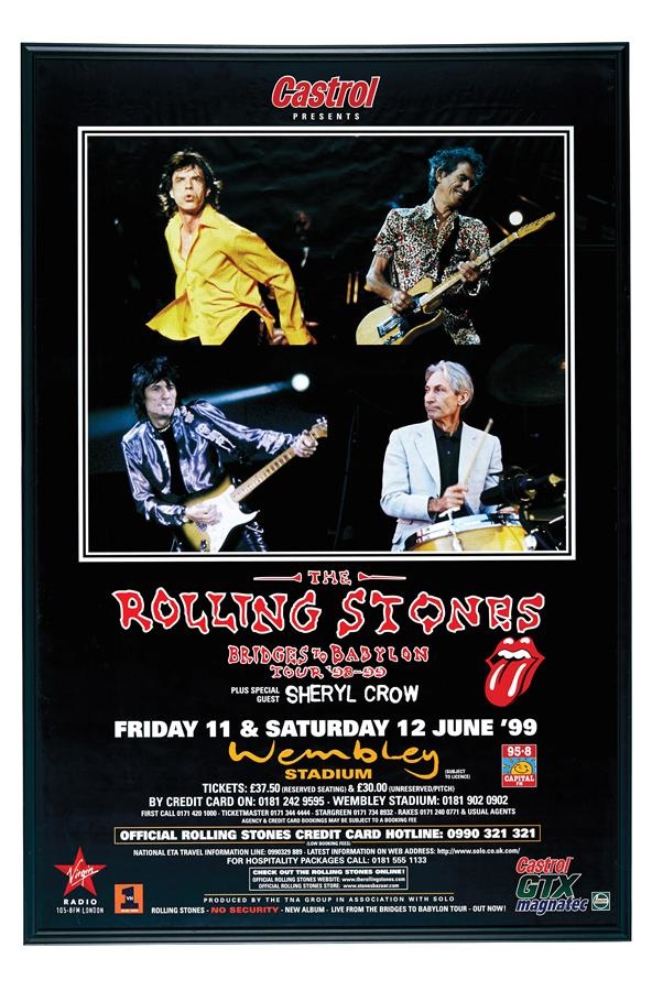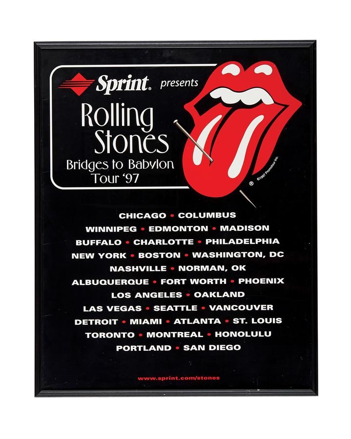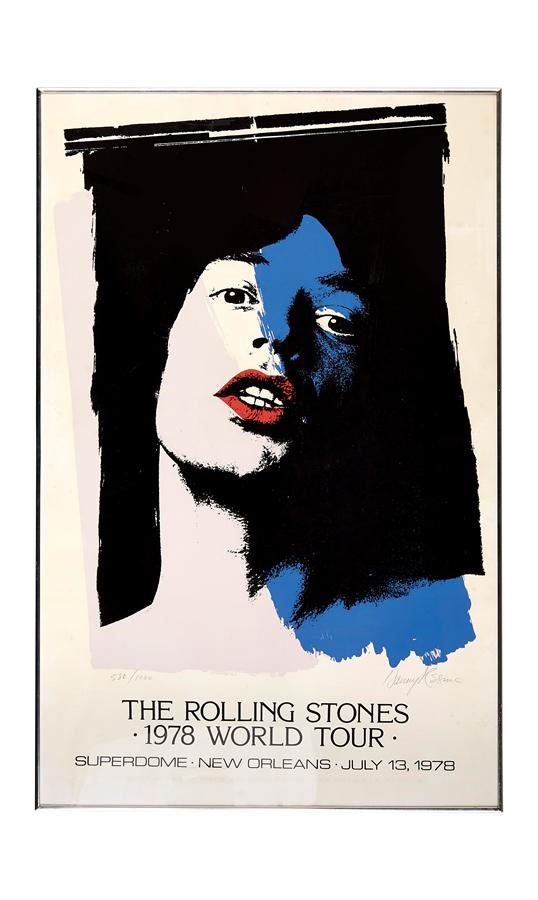 From "Some Girls" to "No Security" and just about every stop in between, a hefty chunk of Rolling Stones history is illustrated in this rockin' collection of tour posters. Small to large sizes ranging from 16" x 19.75: to 62" x 42" and all are framed. Included is a 1978 Tour poster, Steel Wheels and more. The posters are mostly NRMT.