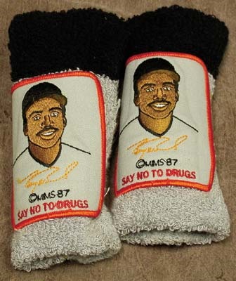An extremely tough item these are complete with his "Say No To Drugs" patch with Bonds' face embroidered right onto them. Nice, nice use and from the year of years. Came from a friend of Barry's.