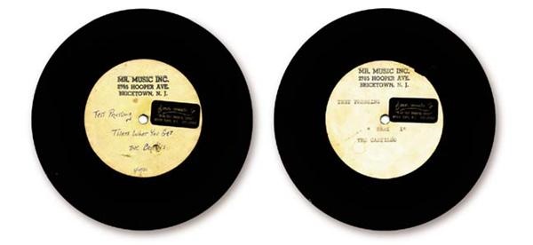 Acetate of The Castiles is the first record ever produced of Bruce Springsteen. Same as the above specimen only this is unsigned rather than signed by Bruce. Songs were co-written by Bruce and his bandmate George Theiss. Seven press-ings of this 45-rpm were produced and the two in this auction represent half of those known to exist. This is considered to be one of the world's rarest and most significant records.