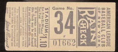 When he called himself "the luckiest man on earth," a nation wept and marveled at the strength and character of this great Yankee. Strong EX stub for "Game 34" at Yankee Stadium is dated "July 4, 1939" in ink on verso, above a secretarial EX-MT ink signature, likely signed that day by Gehrig's wife. This is not just a piece of baseball history-it's a symbol of the beauty of the human spirit.