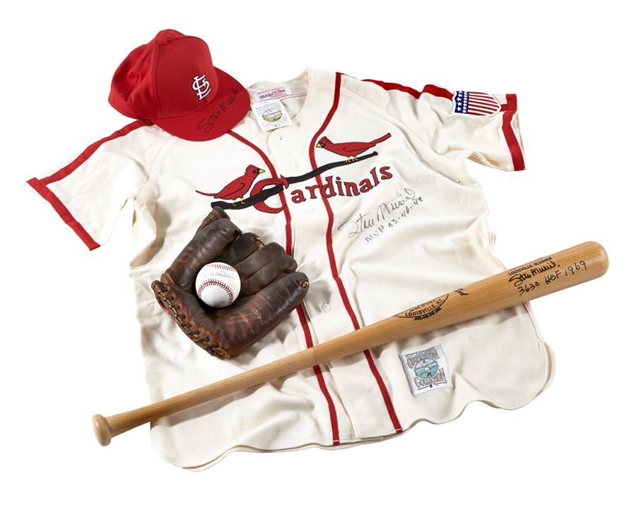 Lot # 658: Stan Musial Signed Jersey, Hat, Bat, Glove and Baseball
