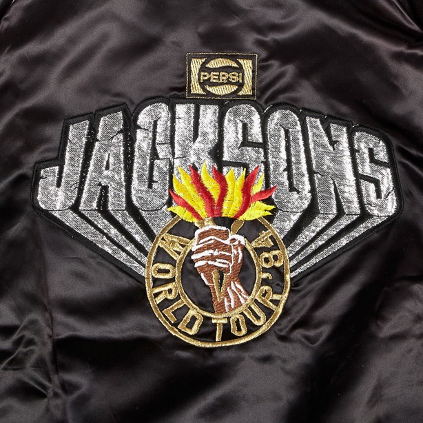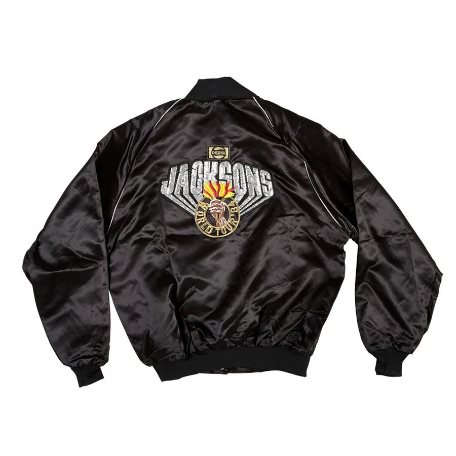 Michael and his five brothers toured the United States and Canada from July to December of 1984, playing to over two-million fans. From that whirlwind tour comes this brand new, never-worn, button-down nylon tour jacket that is beautiful embroidered with silver "JACKSONS" and flaming torch highlighting the graphic art. There's also a corporate logo for the major sponsor, Pepsi above the logo on the back, while the front is simply black. Comes with "UPSTREAM" tags in the collar. This was the only tour that incorporated all six Jackson brothers, although Jackie missed several of the 55 performances due to injury.