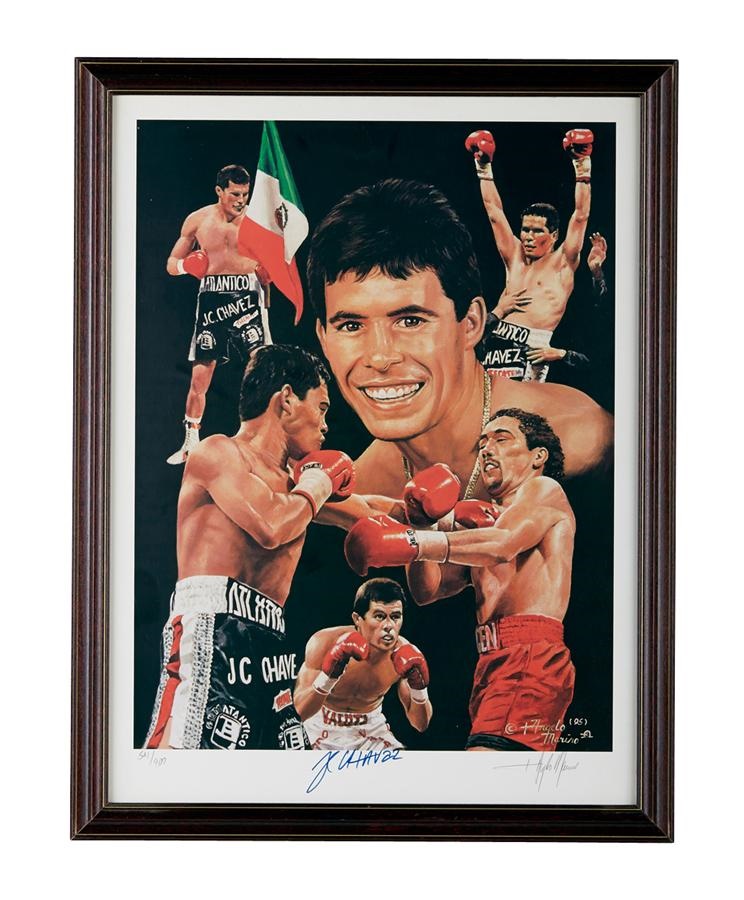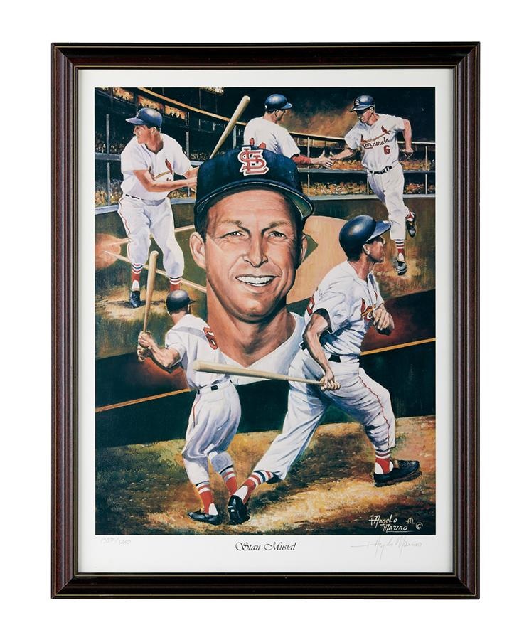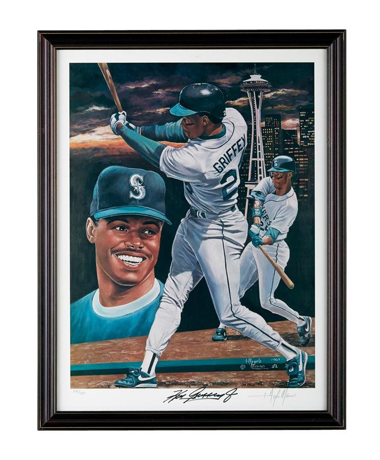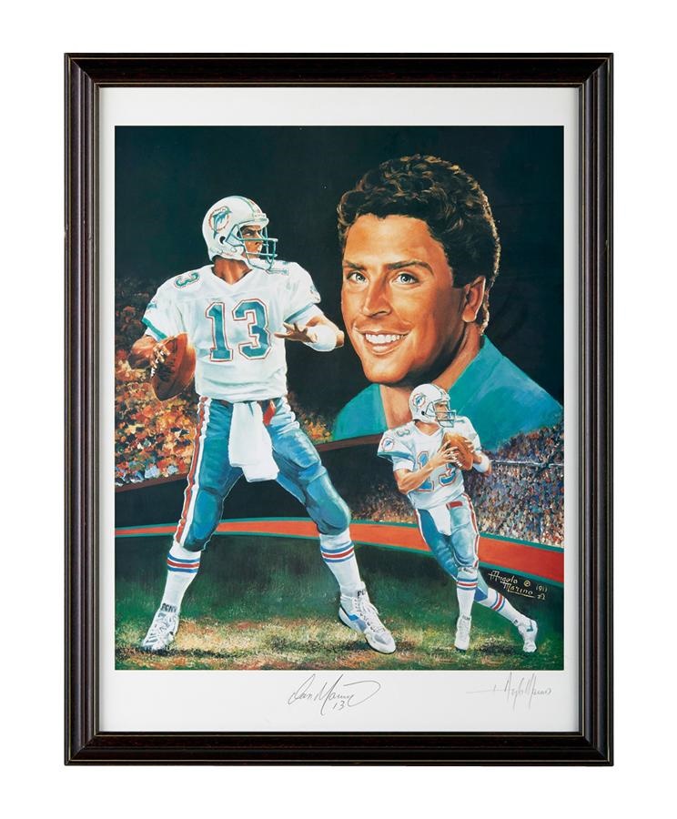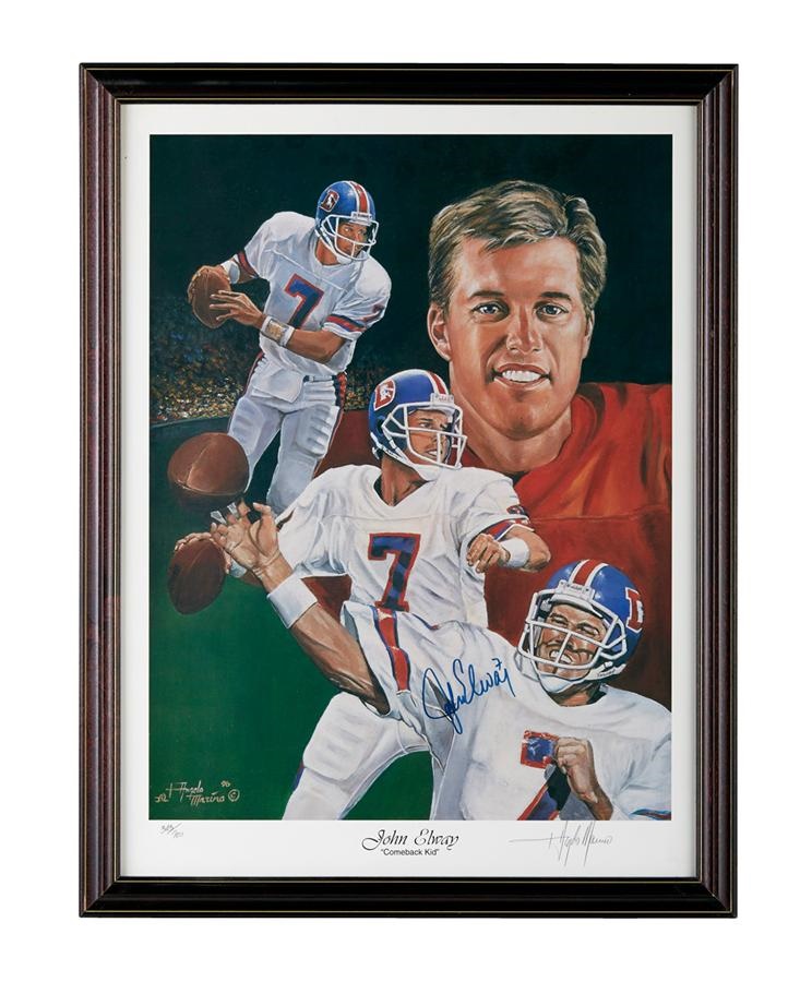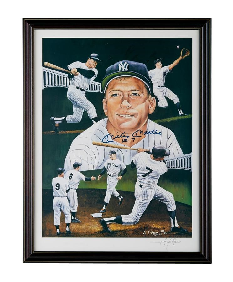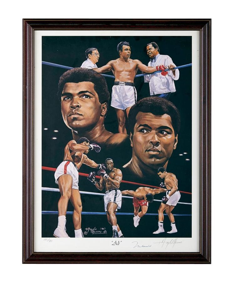 This is a matched set of prints done by Angelo Marino. The collection includes Mickey Mantle, Joe DiMaggio, Muhammad Ali, Ken Griffey Jr, Stan Musial, Dan Marino, John Elway and Julio Ceser Chavez. The prints have matching frames and are 20" x 24" in size. All are signed except for the Musial print and rate 8/9 out of 10. All are in NRMT condition and have excellent color.