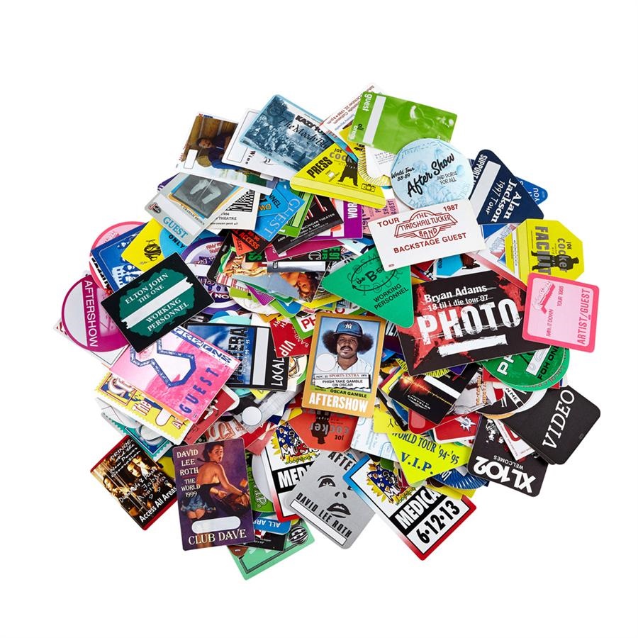 This incredible collection of unused backstage passes was obtained directly from Otto Printing and Entertainment, the company that made them, and is still the preeminent manufacturer. Almost all are from rock concerts including major acts such as Elton John, Van Halen, Michael Jackson, Kiss, The Who, The Sopranos Crew, Prince, R.E.M., Guns N' Roses, U2, The Allman Brothers Band, Bon Jovi, Judas Priest, Phish, The Moody Blues, Ozzy Osbourne and many more. Makes for a cool stroll through rock history.