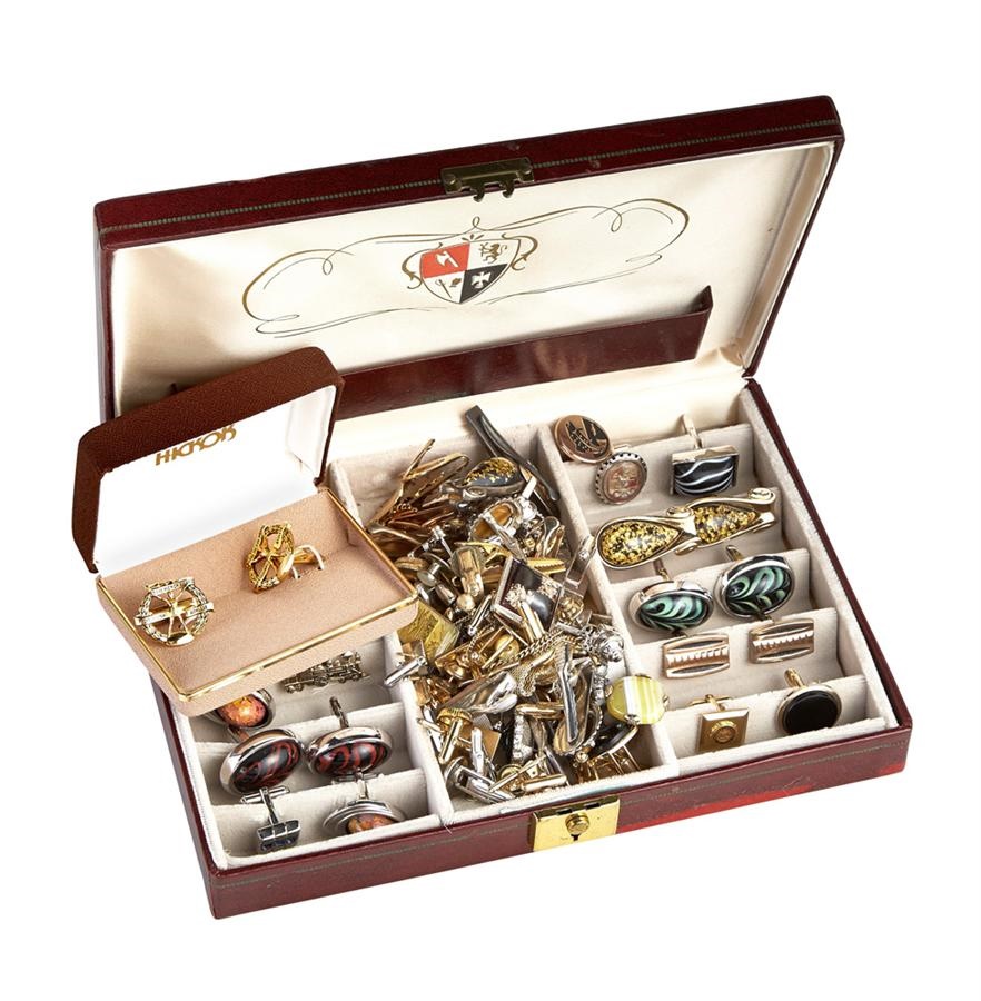 In the words of ZZ Top, every girl's crazy about a sharp dressed man. And Red Schoendienst has always been one dapper dresser. Here we have some very nice Accoutrements, all of which were Red's and many of which he wore to formal functions from the 1940s through the present day. There are over 100 pieces in all with some matching sets. There is real silver and gold as well. The majority are not baseball related but we do have a set of cuff links with the Presidential seal given to Red by George Bush and a set of 1964 Cardinals presentational cuff links. Here is your chance to actually dress like Red! Most pieces are EX or better and come with one of Red's jewelry boxes.
