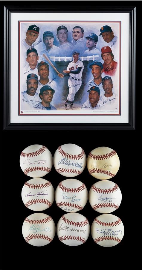 Lot # 292: 500 Home Run Club Signed Lithograph and Baseballs