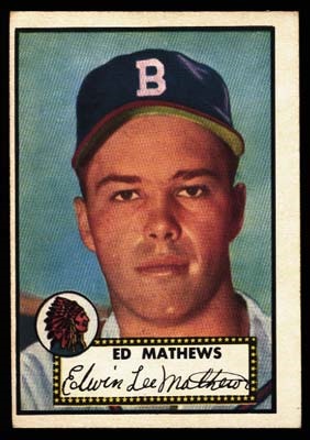 This is the tough to find high # rookie of Ed Mathews from the most famous baseball set of the post war era. This is the last card from the short printed high # series. It grades Ex to Ex+ and is off centered left to right. This card has tremendous color & an excep-tionally clean back.