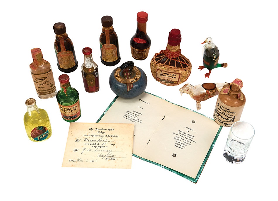 Lot # 549: Mickey Cochrane Liquor Bottles and 1931 Japan Tour Items (14)