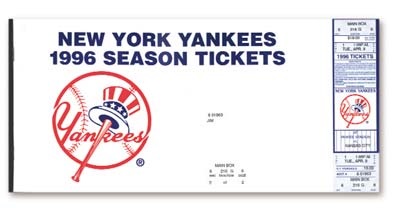 Lot # 958: 1996 New York Yankees Season Ticket