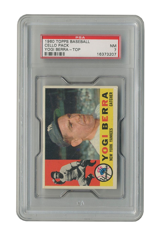 Lot # 668: 1960 Topps Cello Pack With Yogi Berra On Top PSA 7 NRMT