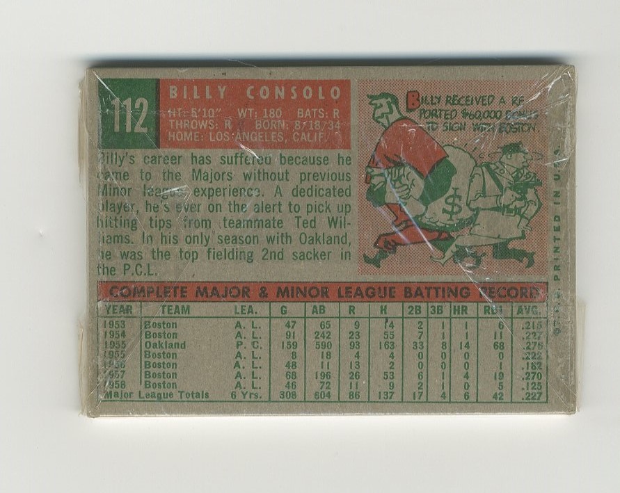 Tough 1959 cello pack has a tear to the cello and at the corners. This lot has been inspected and authenticated by Steve Hart of Baseball Card Exchange.