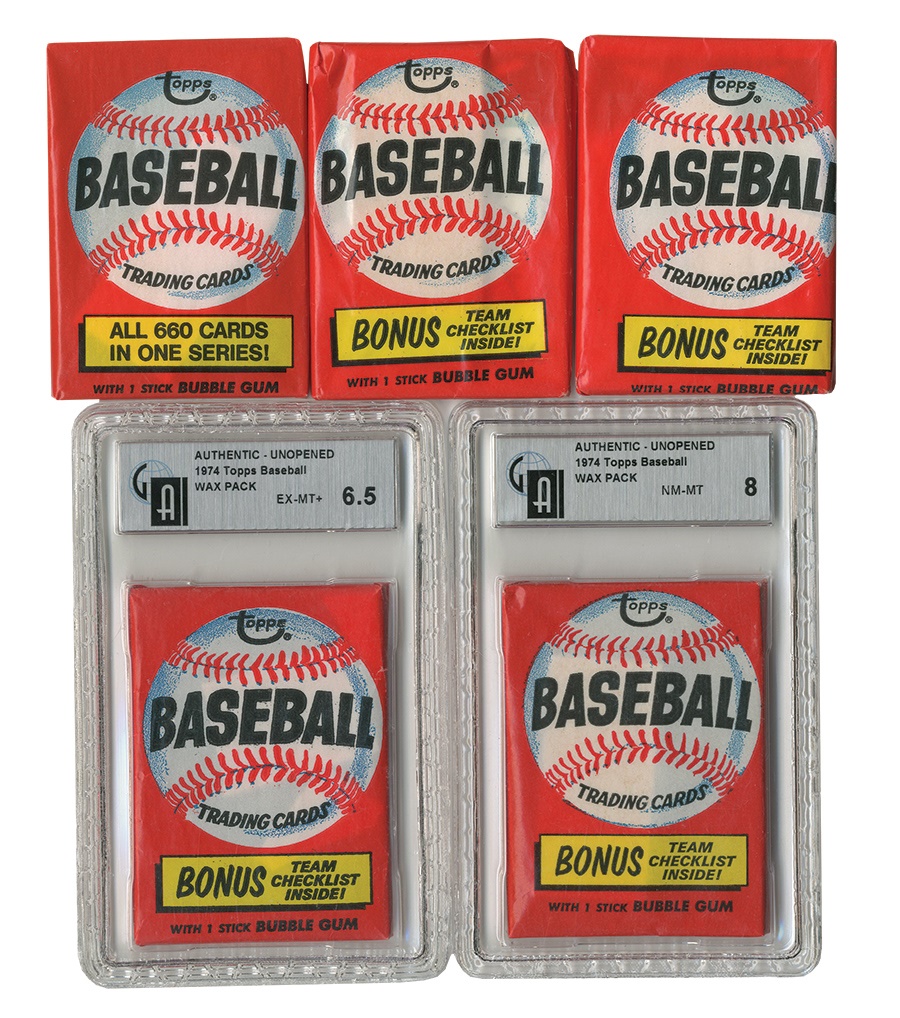 The two graded are GAI6.5 and GAI8. The three ungraded show only light wear. This lot has been inspected and authenticated by Steve Hart of Baseball Card Exchange.