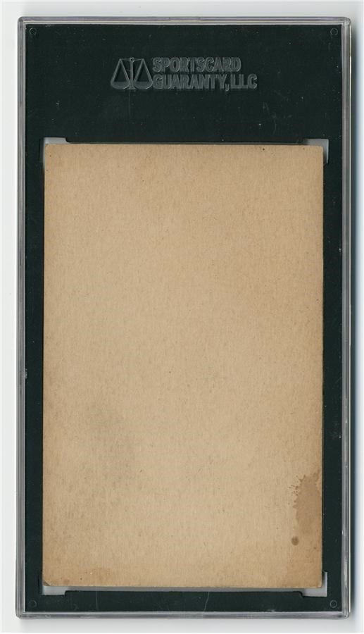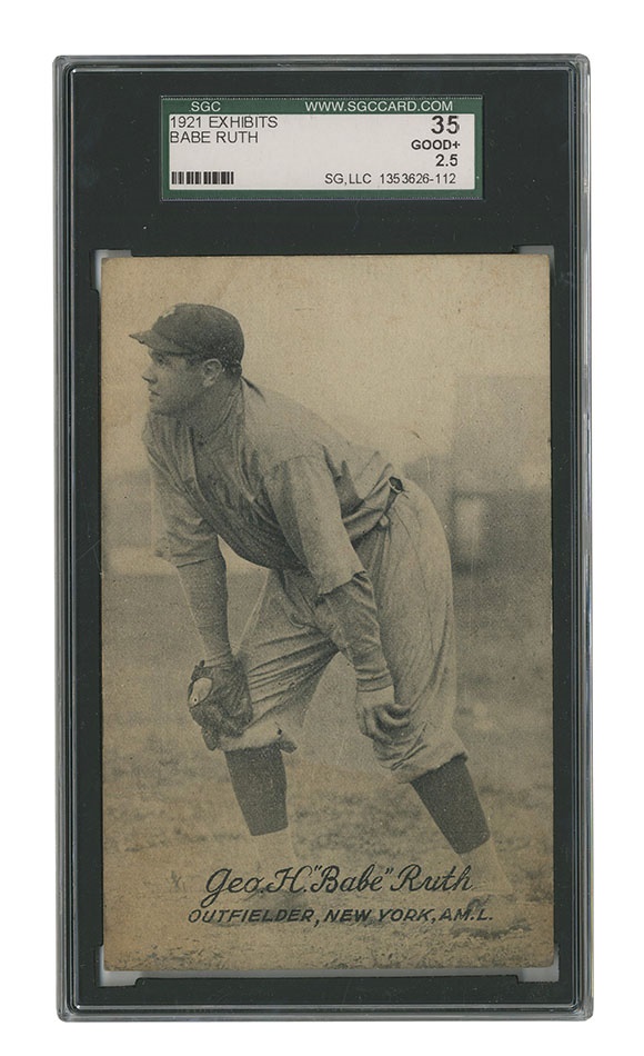 Babe Ruth is portrayed in a full-length fielding pose on this early 1920s issue. Visually Ex+, this card is downgraded to Good + by SGC for a stain on the blank reverse.