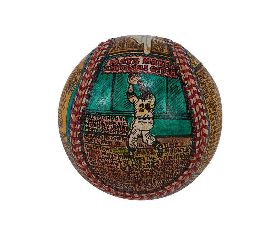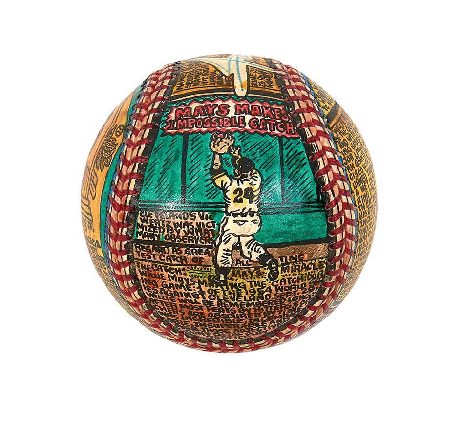 Lot # 694: Exceptional Willie Mays "The Catch" Baseball by George Soznak