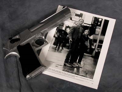 He's Baaacck! The Last Action Hero is Arnold, and this was his gun! It is a repli-ca of a .357 Desert Eagle Magnum. Included is a promo movie still showing Arnold with the piece.