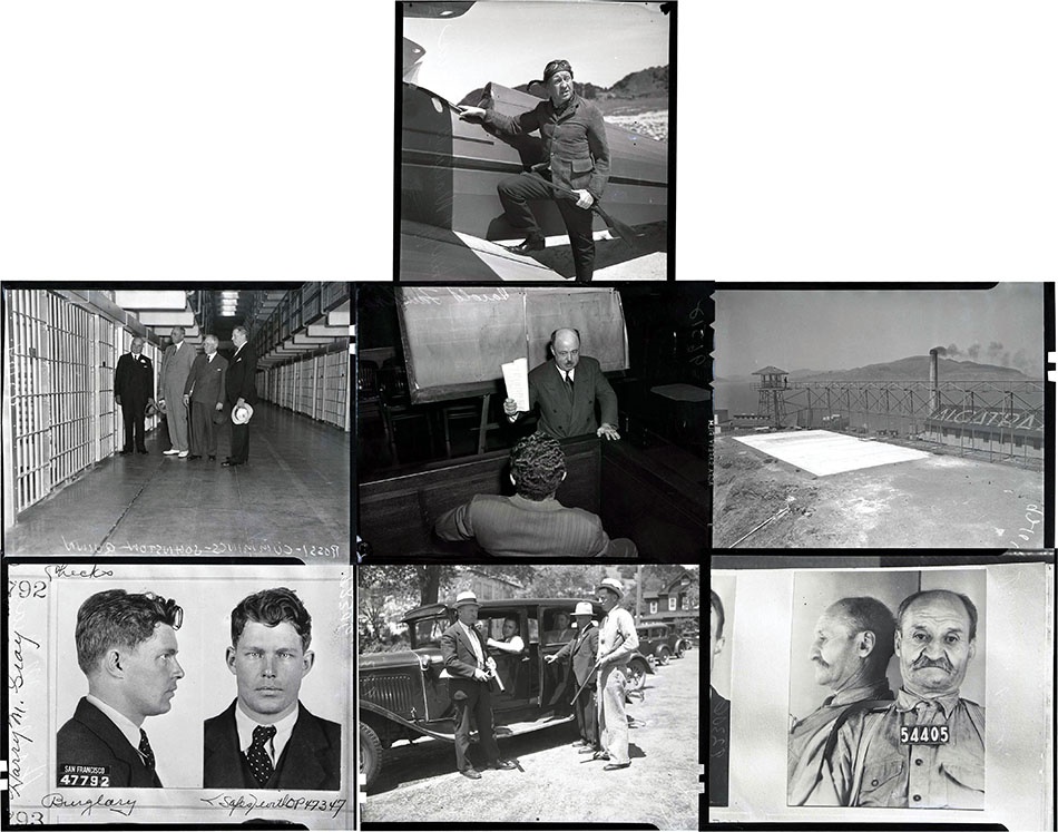 Straight from the archives of the San Francisco Examiner in the 1930s come these 65 negatives from numerous trials that covered escapes from Alcatraz, including exterior and interior shots of the prison off the shore of San Francisco. The images range from 1934 to 1939 and include prisoners, attorneys and even the warden. One packet describes Al Capone's arrival at Alcatraz via train. An "arresting" collection for sure.