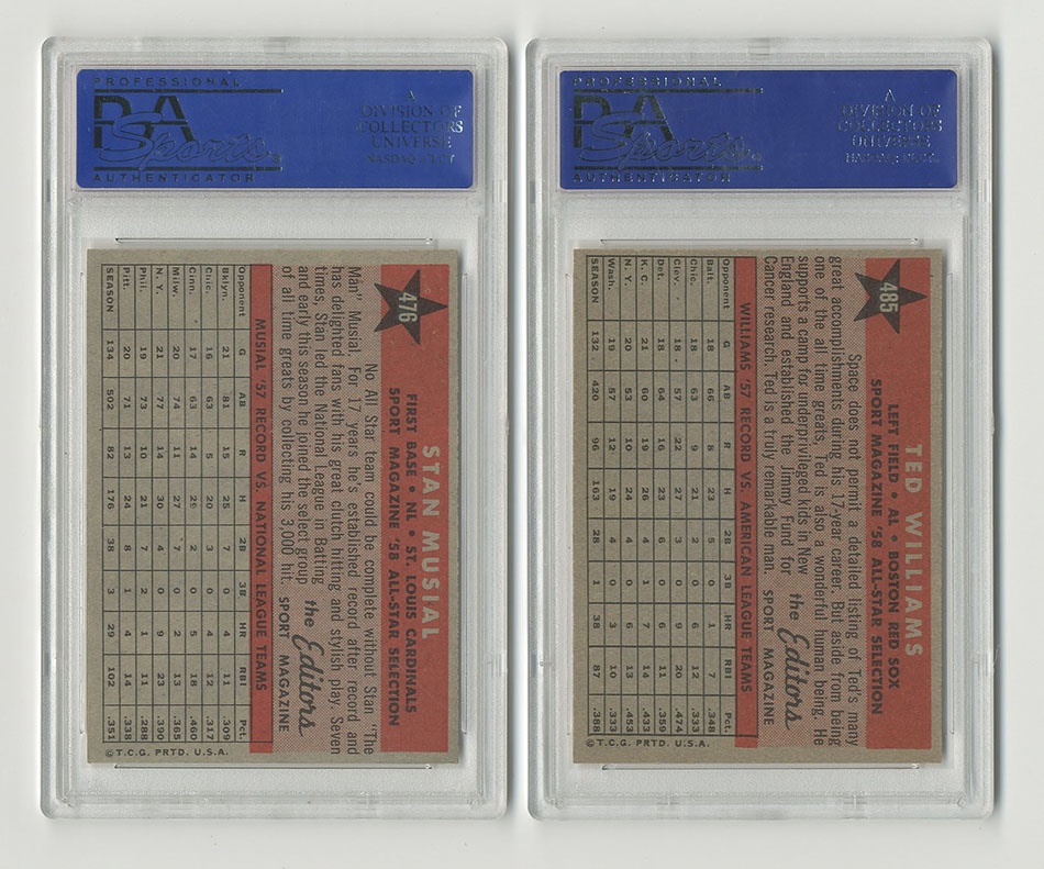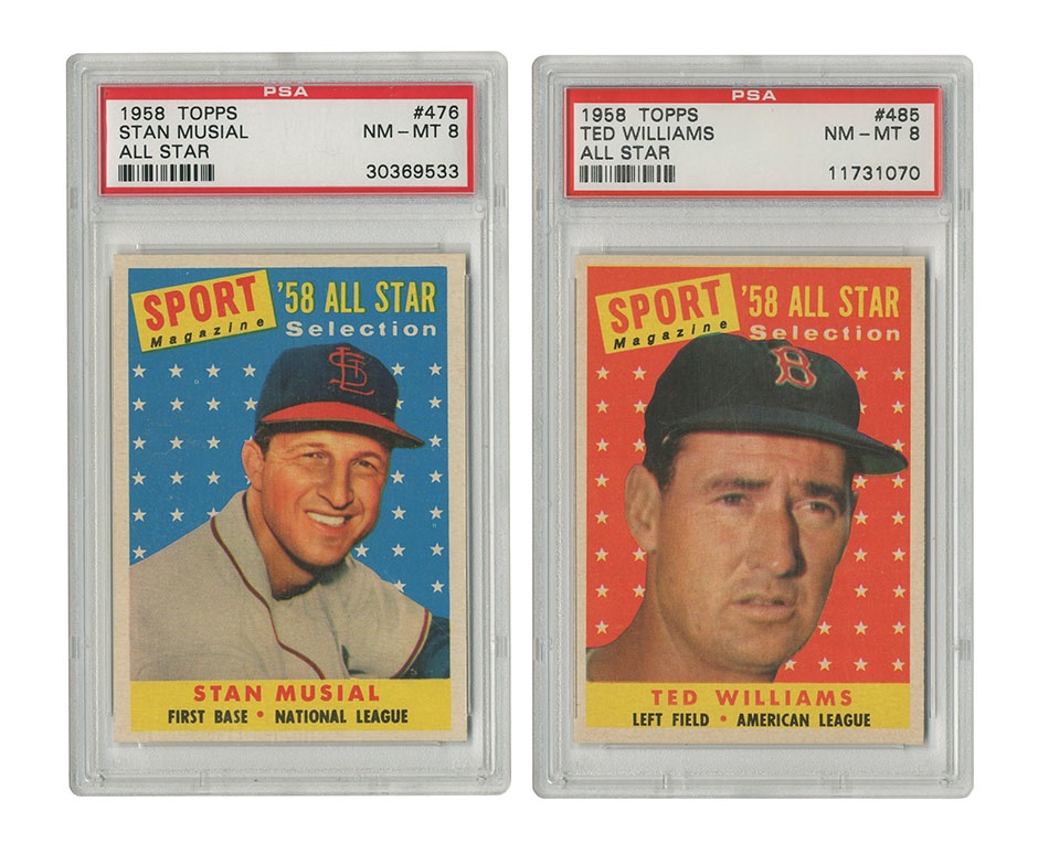 Lot # 621: 1958 Topps Ted Williams & Stan Musial All-Star Cards Both PSA 8 NM-MT